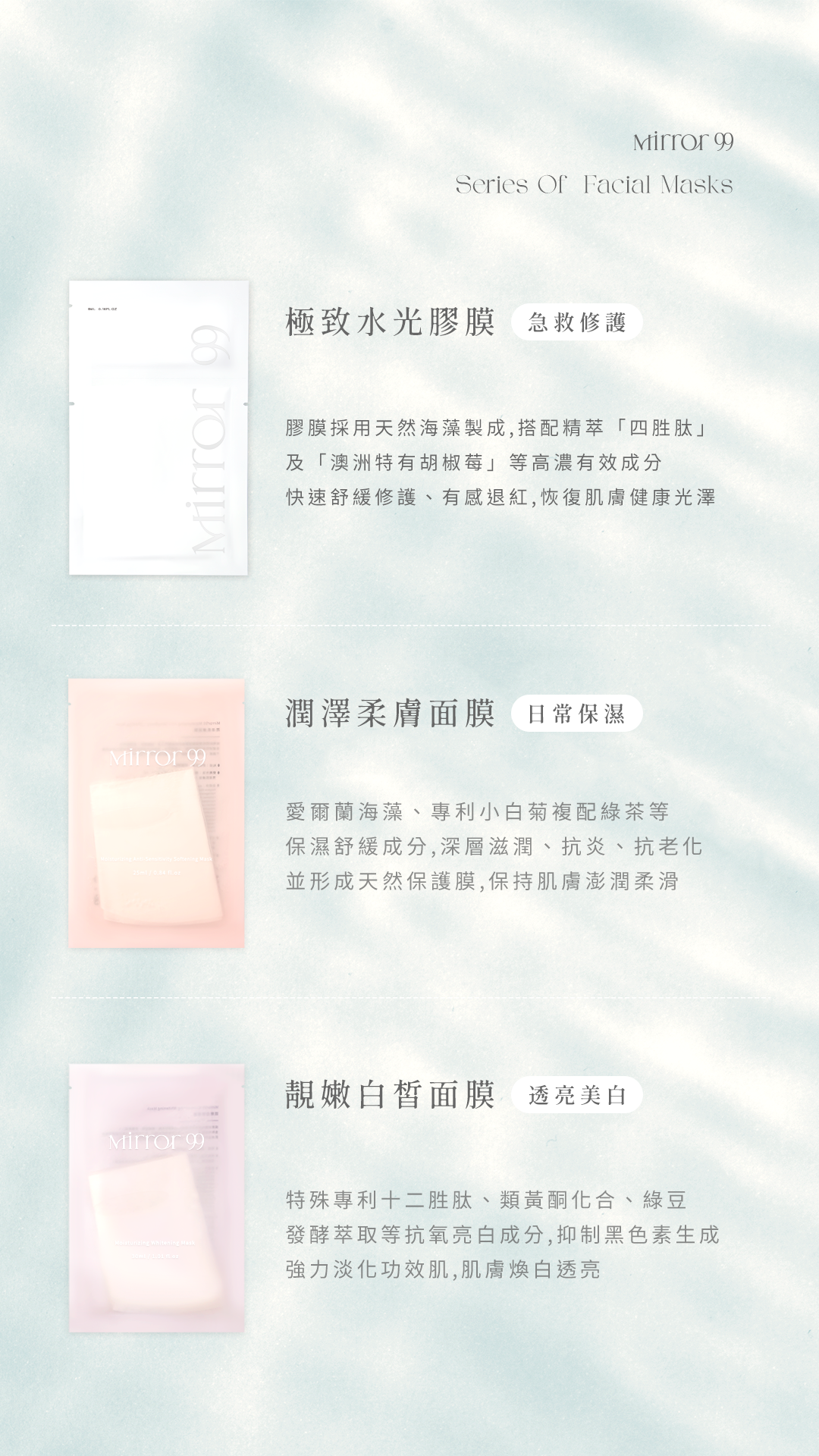 穩膚煥顏系列面膜 :修護1片+美白1片+保濕1片